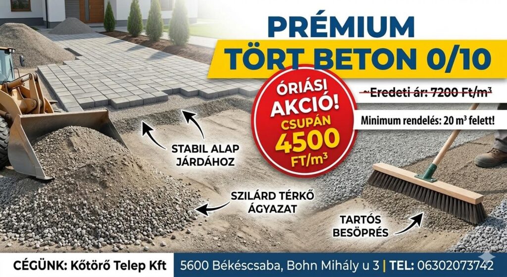 Felejtse el a süllyedő burkolatokat! Telepünkön most kiemelt akciót hirdetünk a 0/10-es frakciójú tört betonra, amely minden szempontból körözi a hagyományos homokot.